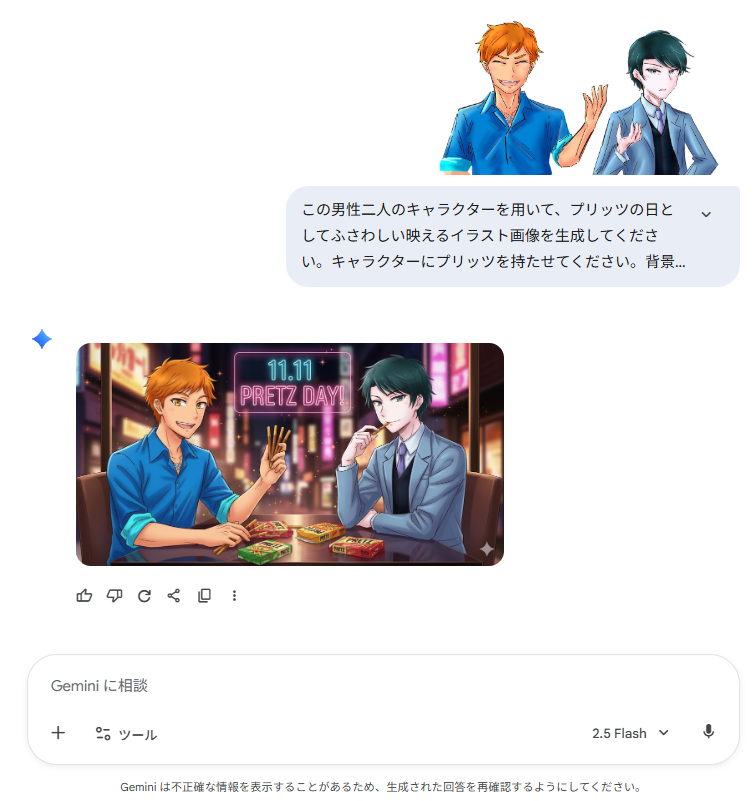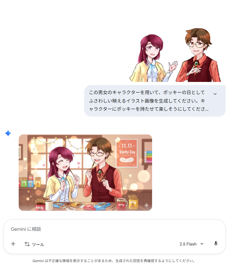 また「ポッキーの日としてふさわしい」という文言だけで、「11/11Poky Day」のポスターや、ポッキーのパッケージを再現できるのも、Nano Bananaの凄い所ですね✨